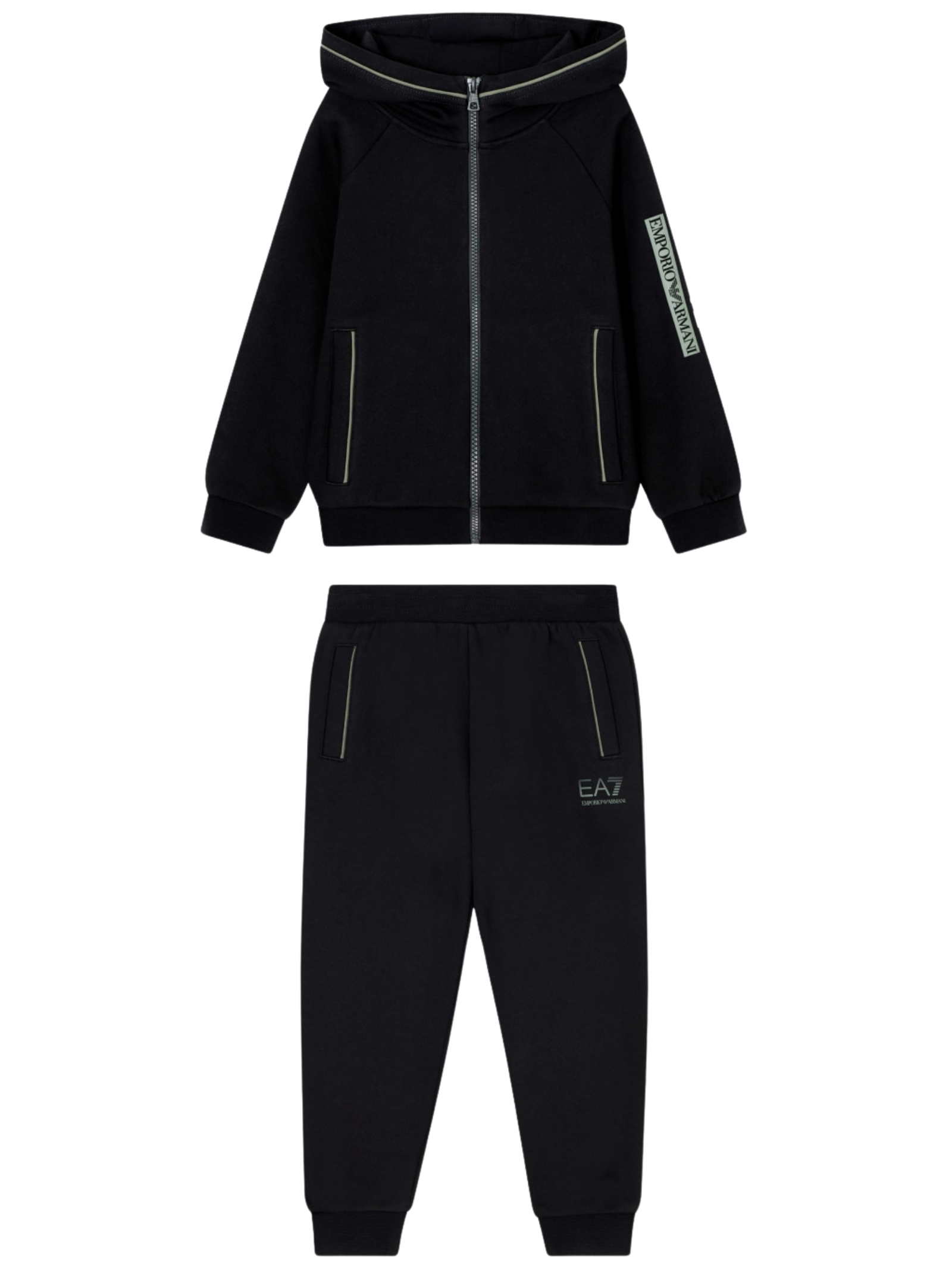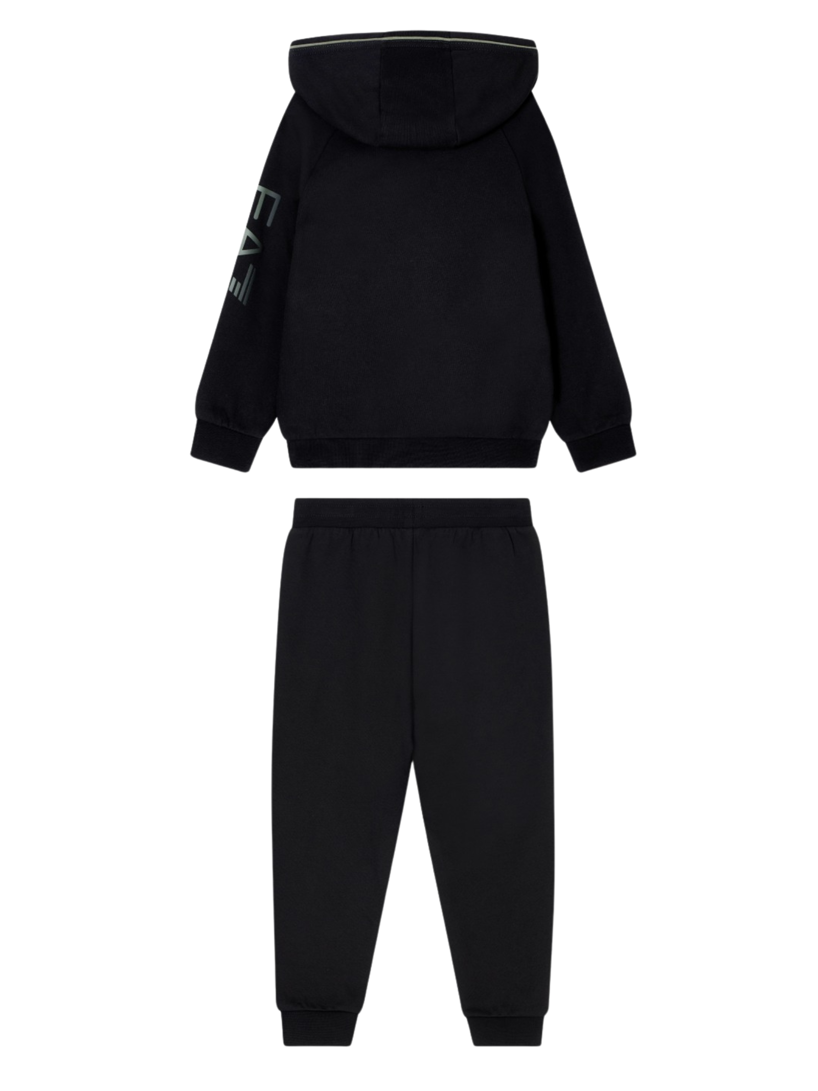 La tuta EA7 combina comodità e stile dinamico per assicurare comfort durante lo sport e i momenti di relax dei più piccoli. Questo modello, realizzato in misto cotone organico, si compone di una felpa con cappuccio e chiusura con zip e un pantalone jogger. Entrambi i capi presentano dettagli piping a contrasto e sono resi subito riconoscibili dalla personalizzazione del logo EA7 degradé. Due capi che possono essere indossati anche separatamente, dando vita a look perfetti per la scuola e il tempo libero.